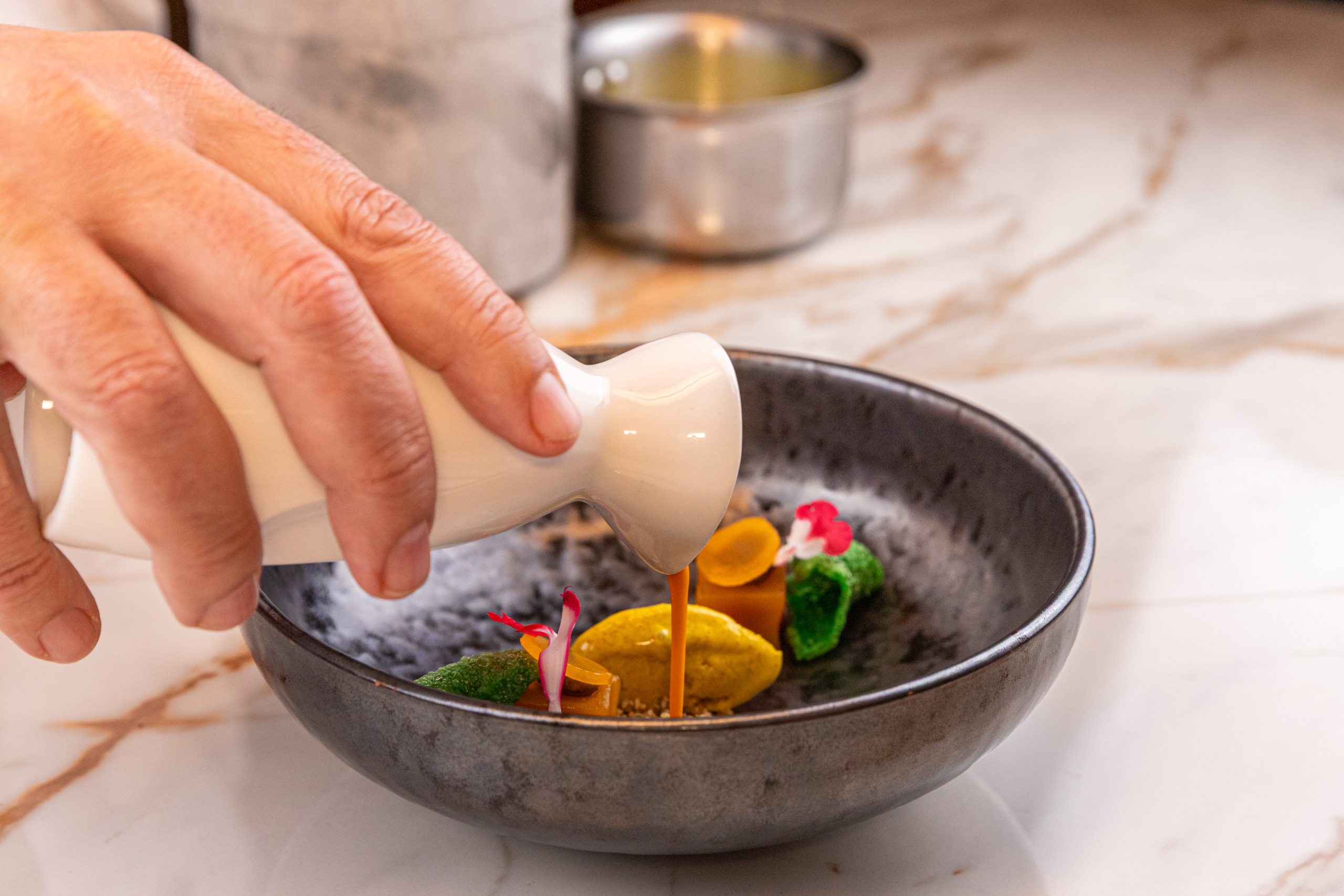 «Inspirado por la rica tradición culinaria de Granada y la pasión por la creatividad gastronómica, las salsas son las protagonistas fundamentales de nuestra cocina junto al concepto de Cocina Ácida»